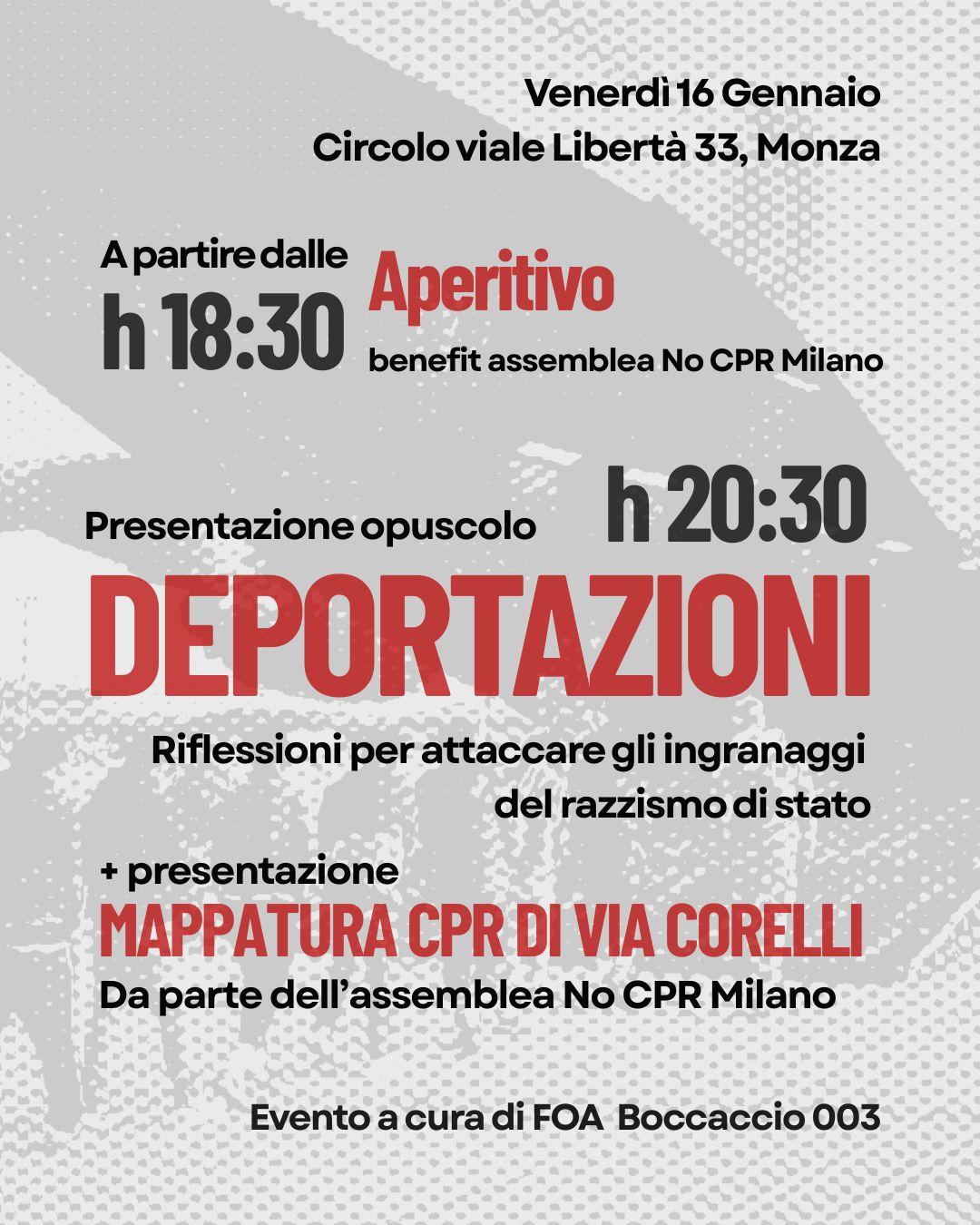 Aperitivo e a seguire presentazione opuscolo “DEPORTAZIONI. Riflessioni per attaccare gli ingranaggi del razzismo di stato”.